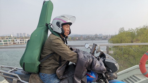 @三品大叔 是从去年开始在快手上发布短视频作品的,在此之前,他已经在青岛即墨骑摩托送快件送了13年。如果从初中他省吃俭用攒钱买吉他算起,他已经在音乐道路上独行了30年。
