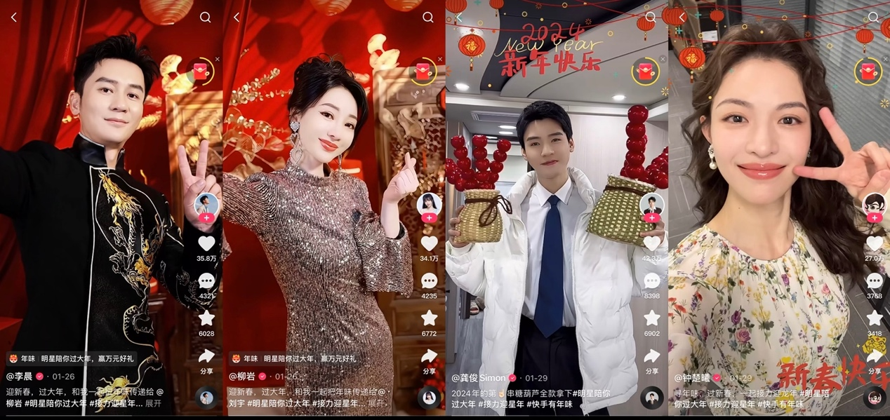 龙年新春将至,到处都洋溢着欢乐喜庆的节日氛围。在这万家团圆之际,快手在春节期间特别发起了「明星陪你过大年」系列活动,让明星与老铁们一起线上寻年味儿,这个春节欢乐不打烊!数据显示,截至目前,快手#明星陪你过大年 话题视频播放量已超16亿。