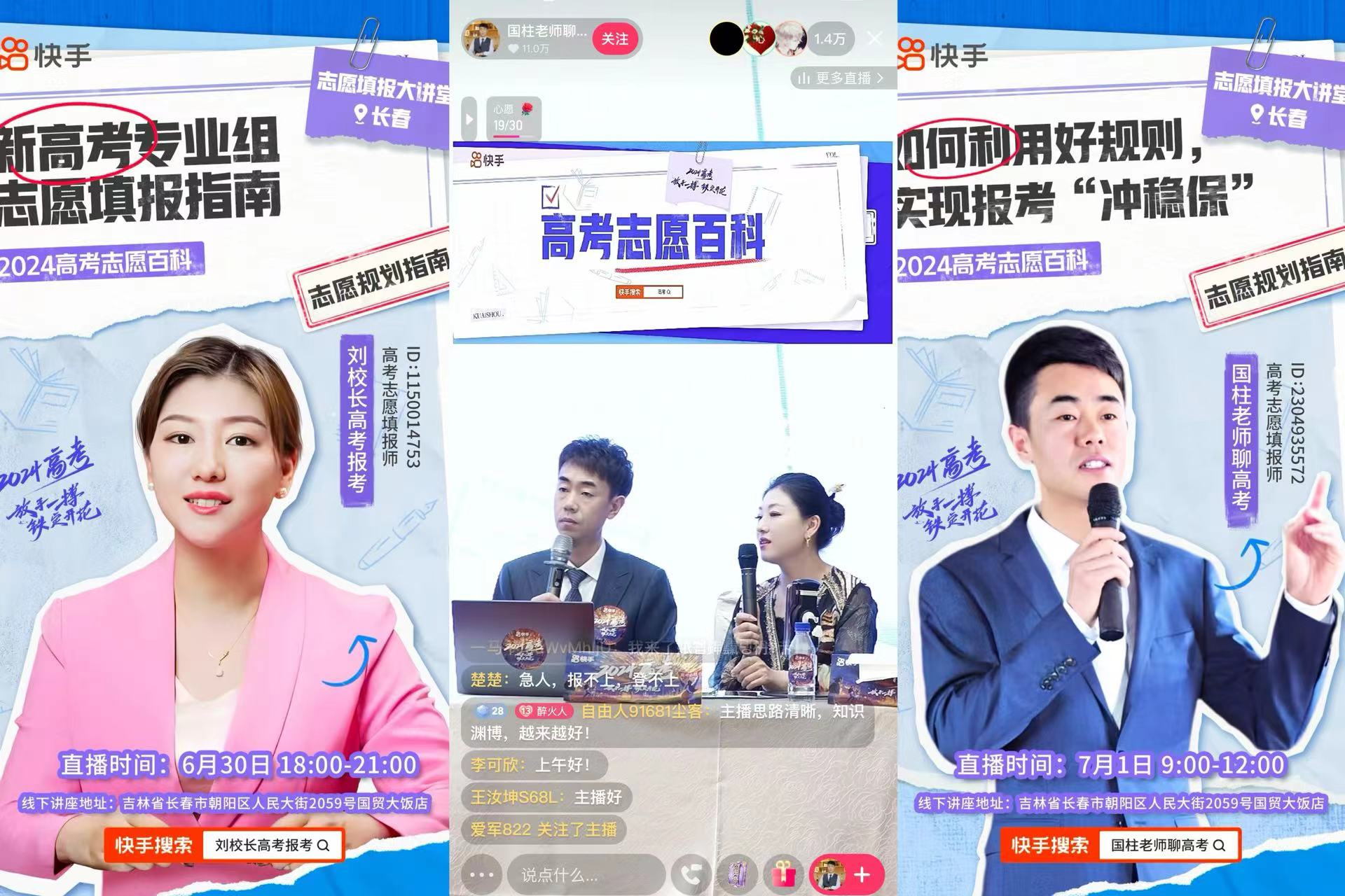 6月30日和7月1日,由快手主办的“高考志愿填报大讲堂”系列公益讲座来到吉林省长春市朝阳区,连续两天的讲座共吸引200余名考生和家长亲临现场,相关内容在快手开启同步直播,收获487万用户线上观看。此次活动为快手“2024高考志愿百科”系列活动之一,是快手泛知识针对2024年高考推出的线下公益系列讲座第二站。