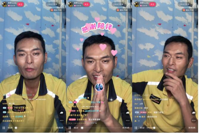 在千里之外的广东,00后农民工万君@黄色安全帽 同样因为讲英语而在网络走红。每天下工后,他会背上一段英语、练好后拍视频发在快手上,在他的账号视频中,画面背景往往是一片片绿色的大楼安全网。头戴黄色安全帽,一脸灰尘泥浆和汗水的工人形象和一口流利的英语形成鲜明反差,说得溜、发音不错、很有“范儿”,用户的正向反馈让他一点点有了自信。