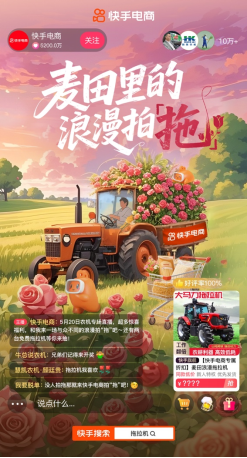 在520这个被符号化的日子里,快手电商平台精准捕捉到三农用户被忽视的消费痛点:当春耕撞上购物节,他们更需要的是能提升亩产的智慧农机具,而非被营销话术包装的仪式感商品。于是当520大家都在抢购美妆礼盒、爆款服饰时,快手电商却选择做小众品类的摆渡人——这次我们不卖风花雪月,只卖土地的“生产力浪漫”,以农机为媒,在田间地头开展一场特别活动,共赴一场麦田里的浪漫拍“拖”。