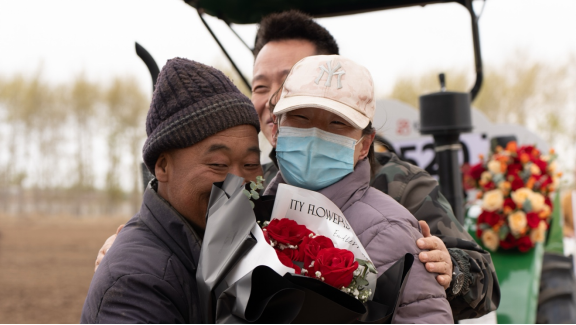 在520正式直播前,快手电商联合农机达人@牛总说农机、@慧凯农机·颜廷贵,开着满载玫瑰与米面粮油的拖拉机穿行乡间,用一场「最接地气的520花车巡游」为九连山村和徐蒲坦村的村民送去了专属惊喜。
