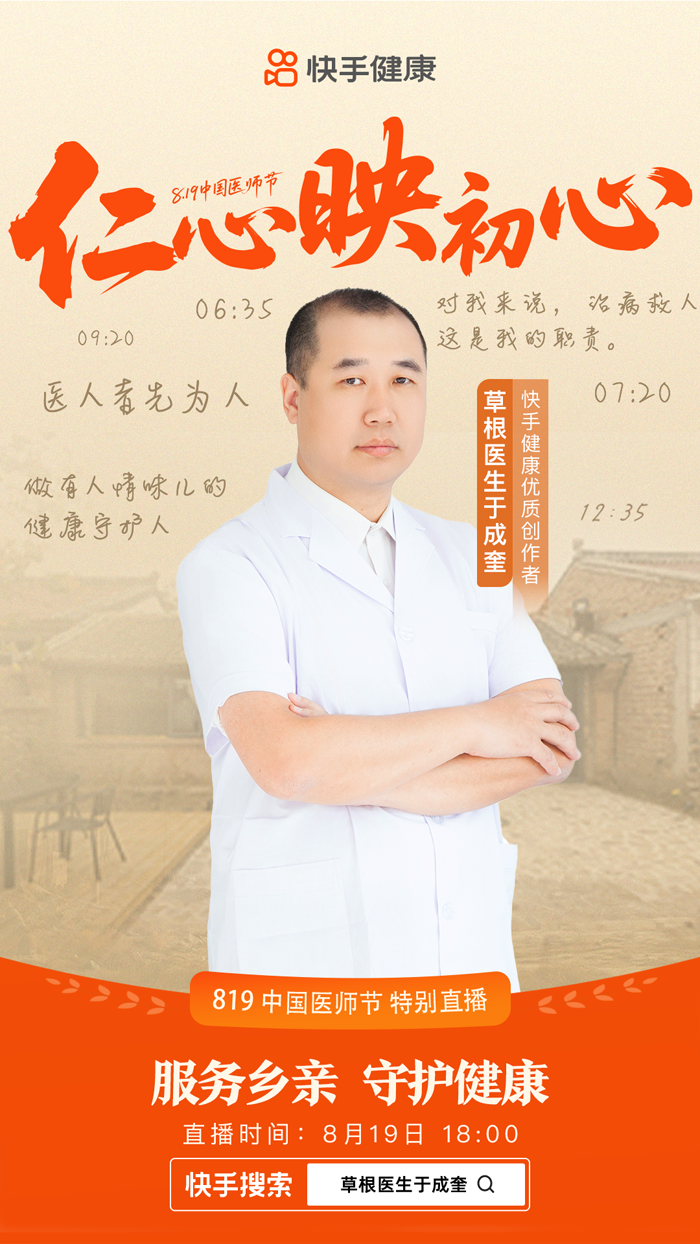 2025年8月19日是第八届中国医师节,为扩大医护工作者在平台的影响力和公信力,引导公众了解医生工作,同时大力推动健康科普知识的广泛传播,快手健康携手健康中国、中国健康教育,共同发起了以“仁心映初心 健康守乡土”为主题的特别活动。