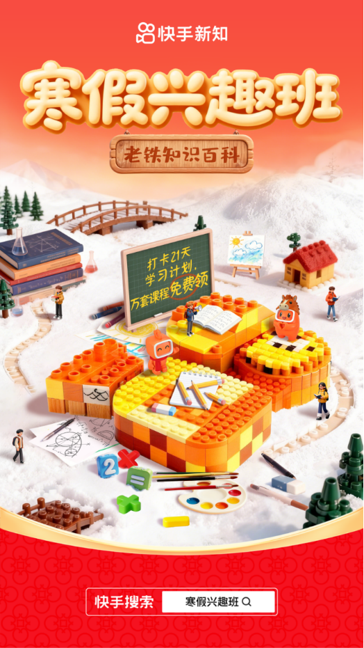 这个寒假,不虚度,来快手,趣求知!即日起,上快手搜索“寒假兴趣班”,即可进入活动主会场,百位名师轮番开讲,海量优质课程免费畅学,与千万“小铁”共赴这场新知之旅。