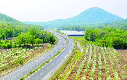 5月24日,车行吉桦公路,但见路边一棵棵红果树整齐排列,万株白花灿然而开,一路飘香,香透长天,好一道香美风景!