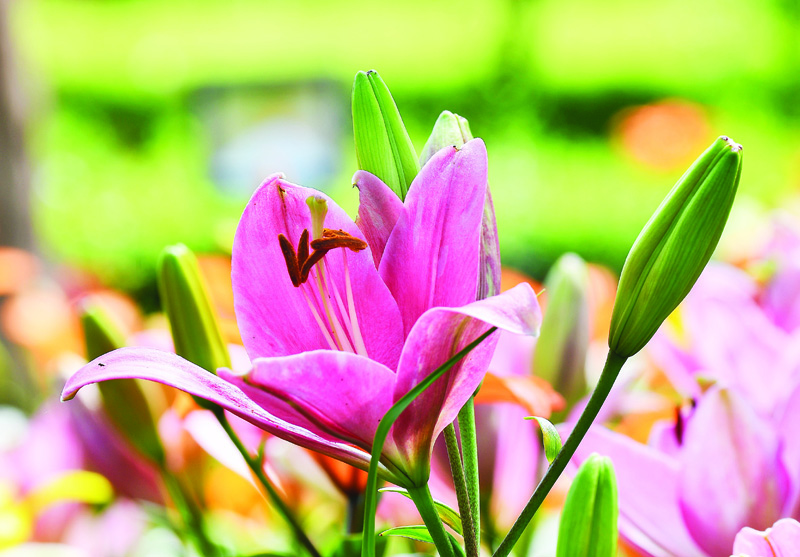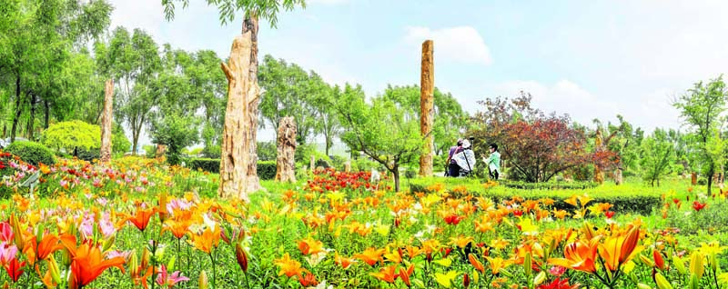 日前,地处船营区大绥河镇的圣德泉亲水度假花园里翠鸟啾啾,花香四溢,这里人工种植的百合花已经进入盛花期,大片的百合花盛开在荷花池塘的两岸,与初放的荷花遥相呼应,一展美颜。摇曳多姿的百合花,吸引了游客慕名前来观赏。绿柳成荫,百花竞放,夏日风景,美不胜收。