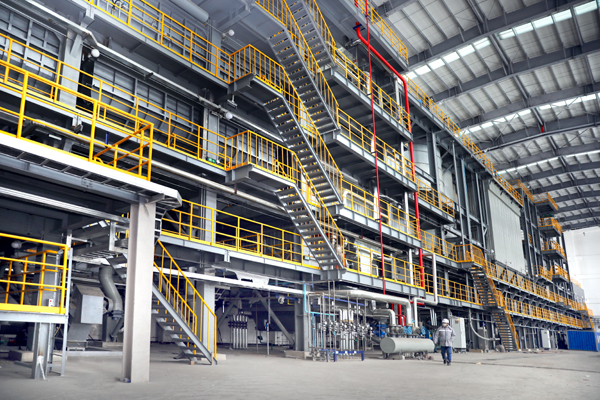 图为该项目已完成的设备安装车间一角。