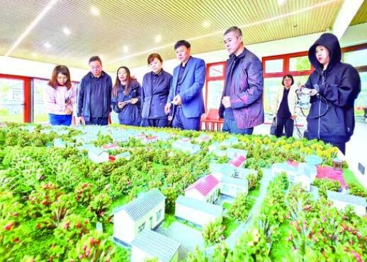 采访团记者在磐石市宝山乡北锅盔村了解和美乡村建设情况。
