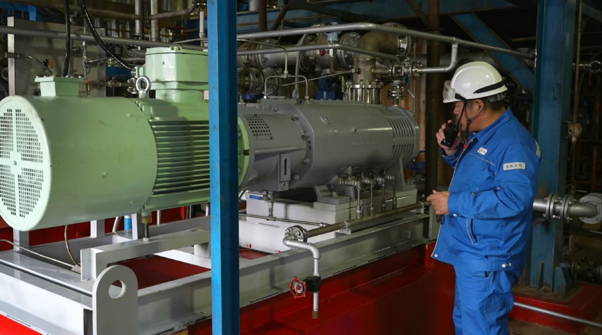 技术人员对改造后的国产真空泵运行状态检查确认。通讯员 许清超