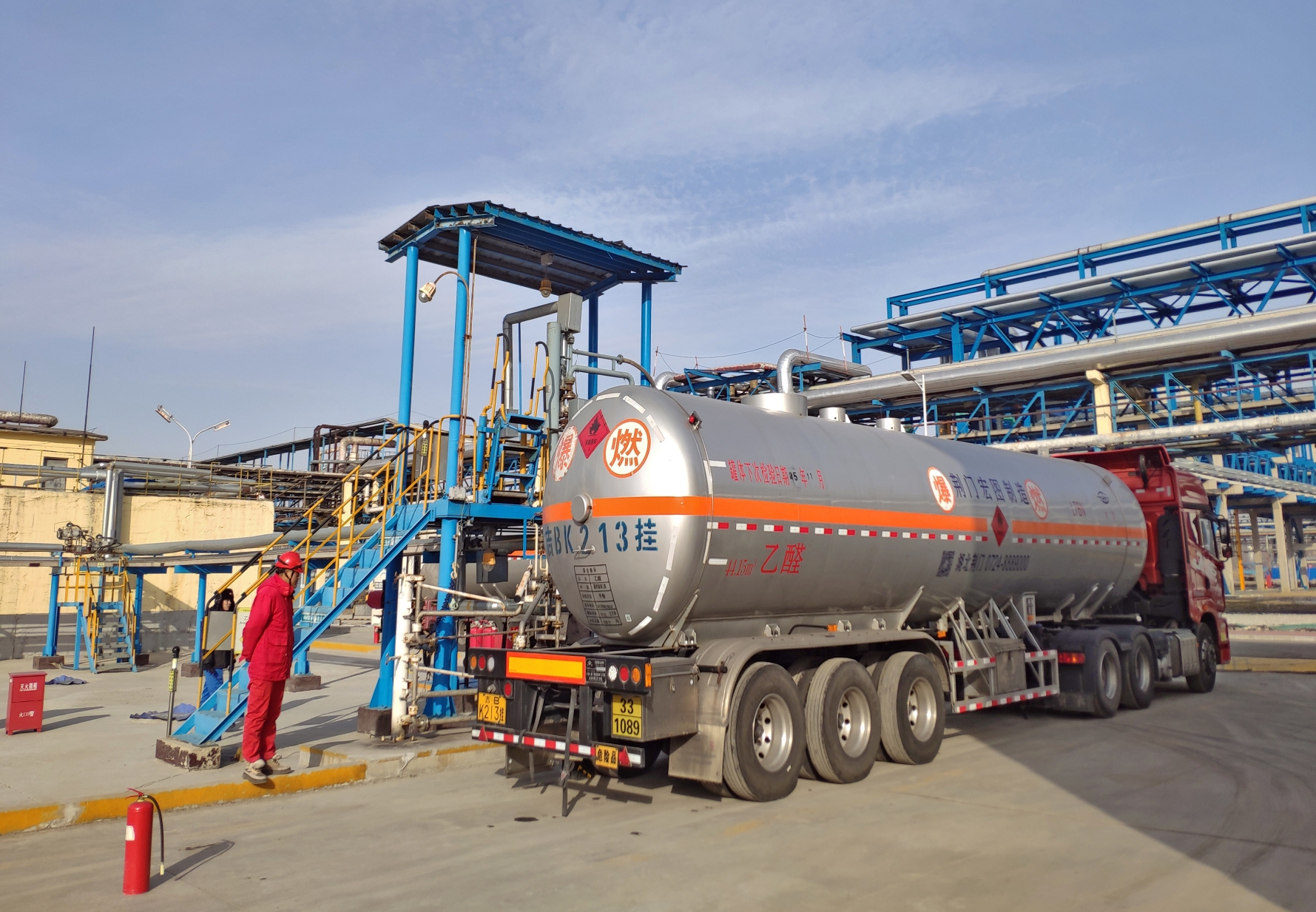 近期受酒精价格降至历史低位和冬季农药需求减少影响,乙醛市场持续走低,乙醛产品销售工作遇到了前所未有的困难。吉林石化公司销售公司通过加强产销衔接,灵活销售策略,实行产销紧密配合,动态优化排产,坚持低库存运行,缩短产品运输周期等有效措施,确保了乙醛产品实现装置平稳运行,全产全销,超额完成12月外销计划。图为吉林石化公司乙醛产品装运现场。