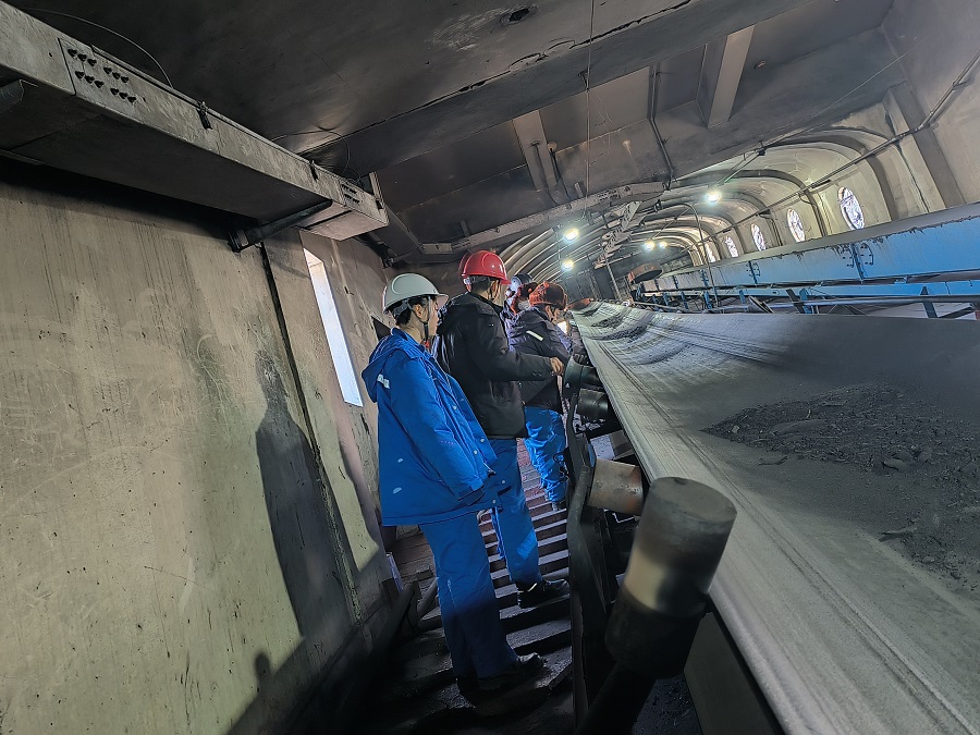 “保镖队”和操作人员一起检查输煤系统运行情况。