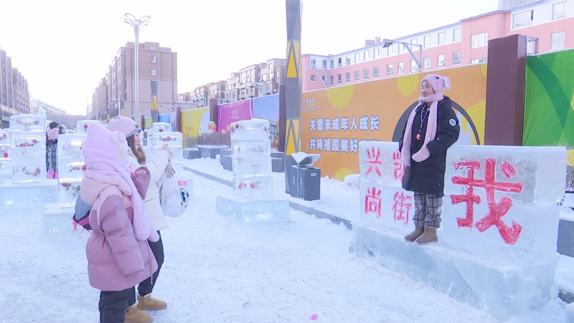 尽管是在冬季,兴凯路步行街内却是热度倍增。群众“赏花”热情高涨,众多游客、摄影爱好者纷纷前来打卡,邂逅浪漫,记录美好。一步一景,移步换景,群众驻足其中,久久不愿离去。