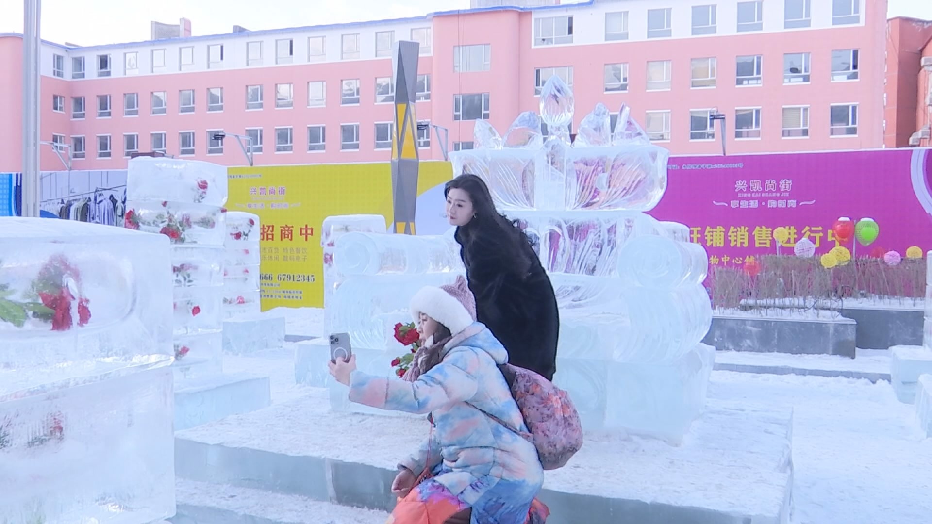 原标题:冰封玫瑰绽放永吉县城步行街