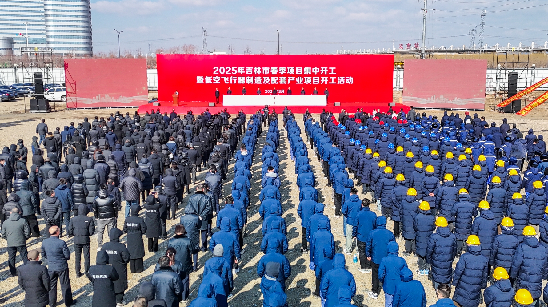 3月13日,2025年吉林市春季项目集中开工暨低空飞行器制造及配套产业项目开工活动在吉林经开区举行,集中开复工项目124个,总投资达到858亿元。副省长李国强、市委书记胡斌、市长王吉、市政协主席李富民等领导和投资企业代表,共同按下项目集中开工启动器。