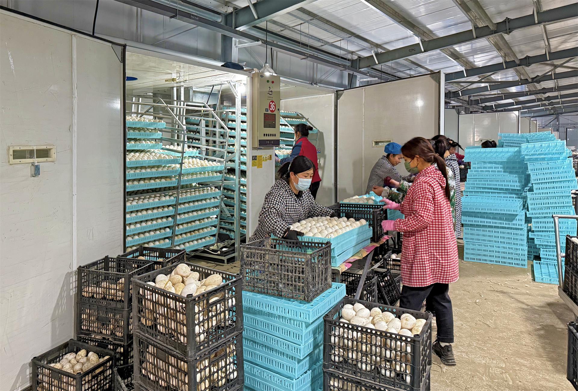 近日,位于舒兰市白旗镇双树村的育繁推一体化白鹅养殖园区内,鹅雏孵化基地车间的工人正在操作全自动孵化设备组织生产。随着舒兰市白鹅产业的不断发展,该园区白鹅养殖量今年可达到100万只,可带动80户400多人增收致富。