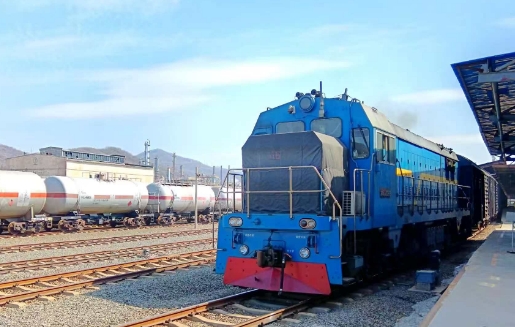装载百余吨产品的货运列车驶出吉林石化仓储中心东部仓储站火车装卸车栈台。