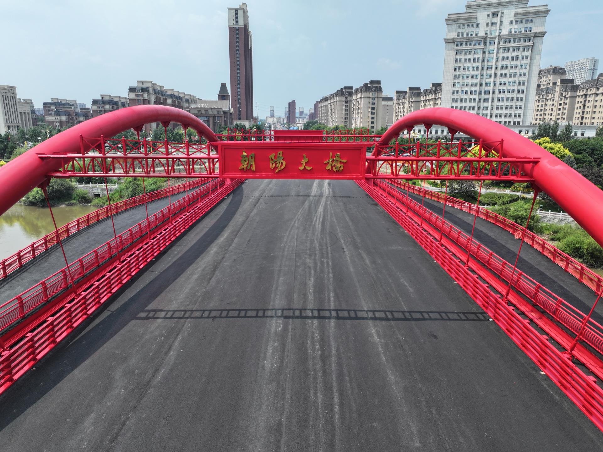 新落成的朝阳大桥为东西走向,西起舒南路与滨河大街交叉口,向东跨越细鳞河,有效串联起滨河大街、舒南路及东环城路。该桥全长163.3米,标准宽度28米,设计为双向四车道。