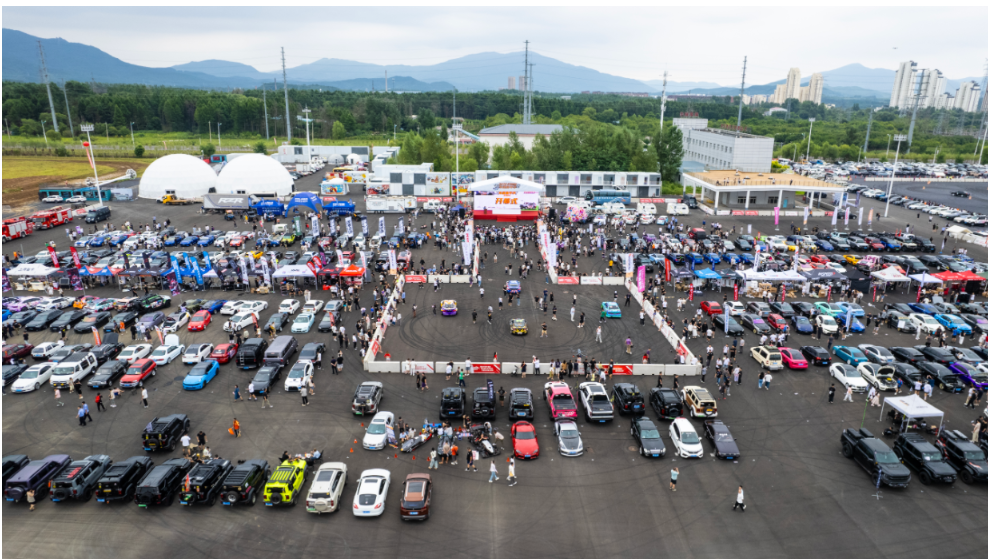 在场地的另一侧是车聚区。来自全国各地的改装车整齐排列,每一辆都彰显着车主的个性与创意。复古风格的老式轿车、充满未来感的超级跑车、炫酷霸气的越野车……琳琅满目,吸引了大量观众驻足拍照。