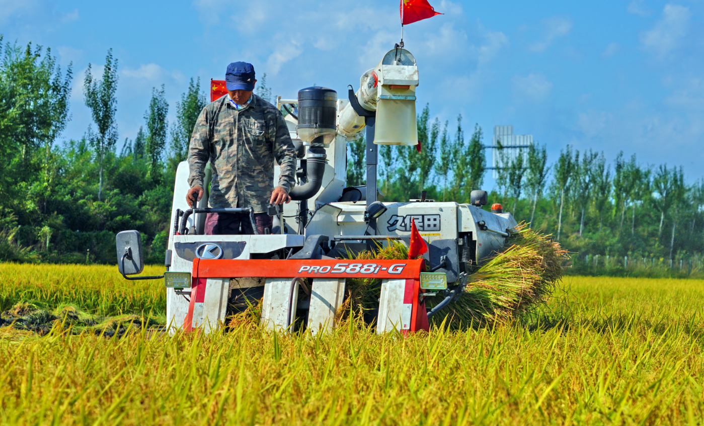 9月2日,舒兰市平安镇金星村稻浪翻滚,收割机轰鸣穿行,金黄稻谷倾泻而下。孙老乐水稻种植专业合作社率先开镰,标志着舒兰市5万公顷稻田陆续进入收割期。