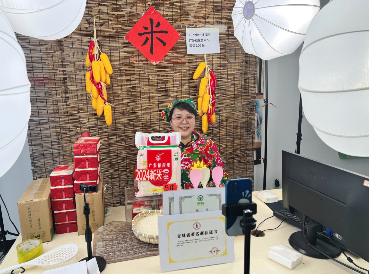 这与舒兰市扩大舒兰大米影响力而进行的线上布局思路不谋而合。去年,舒兰市与京东集团达成合作,在京东的“春晓计划”中推出了舒兰大米产业带专项政策,包含费用减免、零元开店、奖励金补助等系列优惠。御鼎贡、秋实、广多、三莲、双申莲等多个米企品牌顺利入驻京东,以“1+N”模式打造舒兰大米电商营销新矩阵。而在这之前,“广多”品牌大米成功进驻淘宝、天猫等平台,孟佳宁借此创下了在线上一小时内销售万袋大米的壮举,她由此成为舒兰大米线上营销的小专家,也成为舒兰大米线上推广的重要角色。