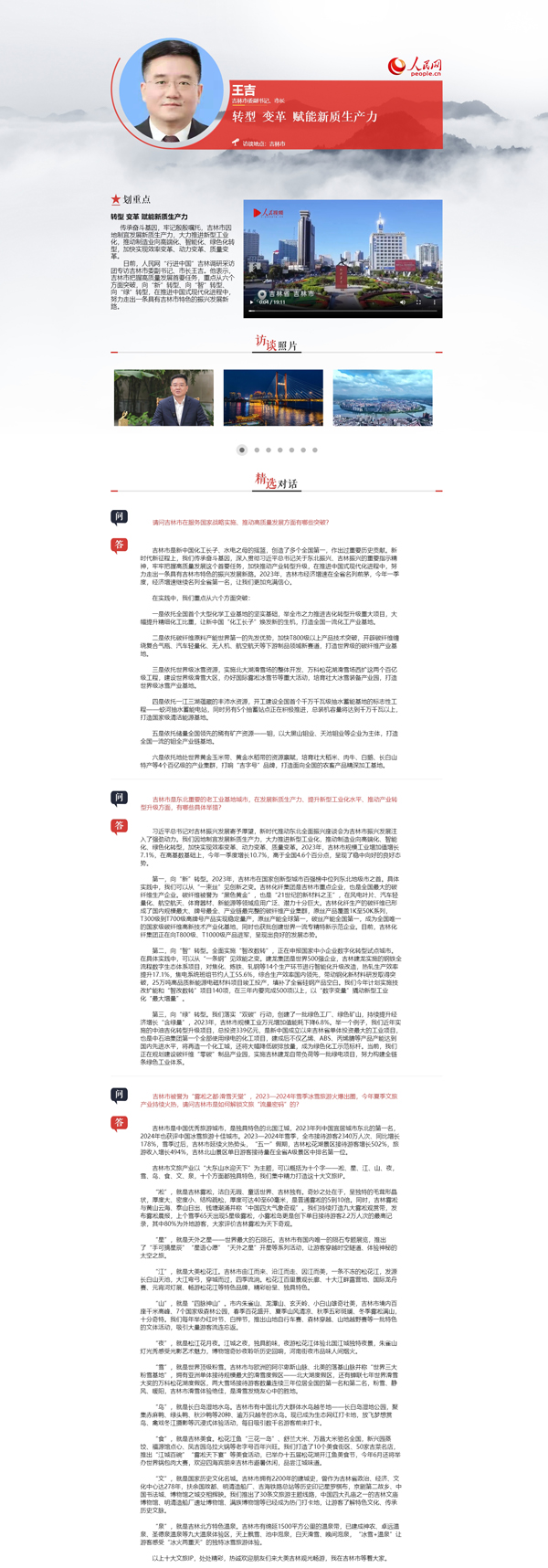 原标题: 人民网专访吉林市委副书记、市长王吉
