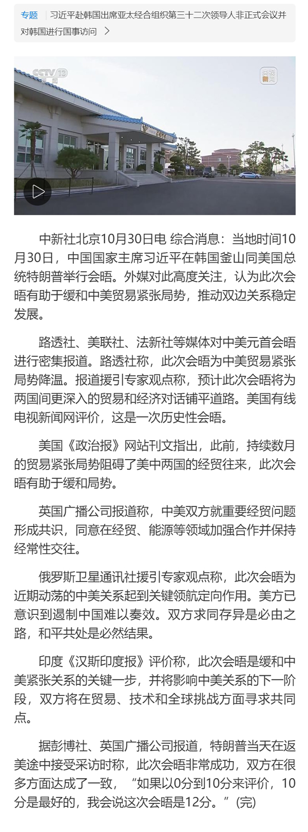 原标题: 外媒关注中美元首会晤:释放缓和信号 推动关系稳定发展