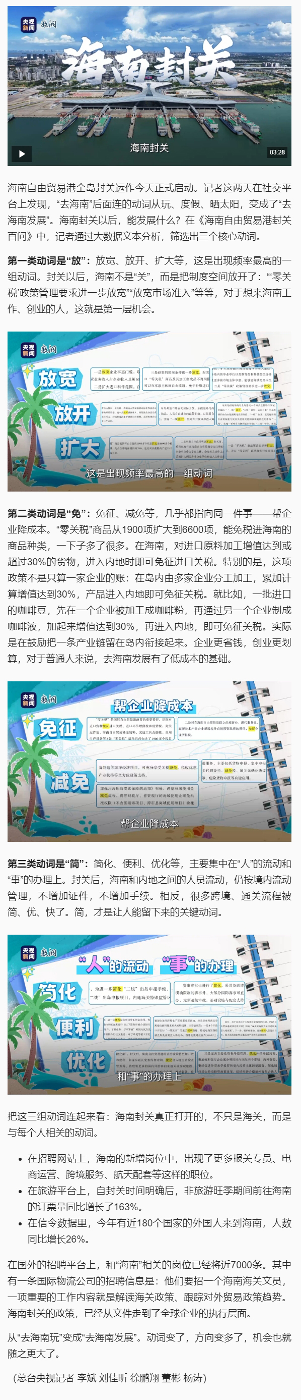 原标题: 视频丨从“去海南玩”到“去海南发展”:封关开启新机遇
