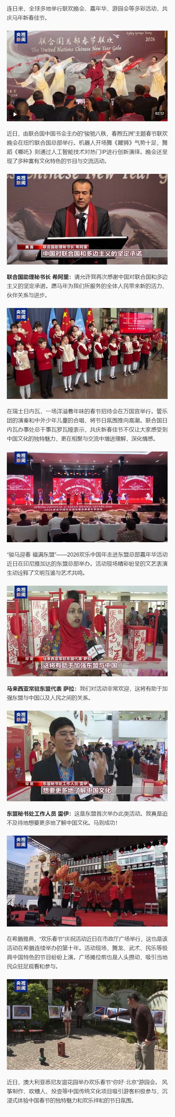 视频丨全球多地举办丰富多彩活动 共庆新春