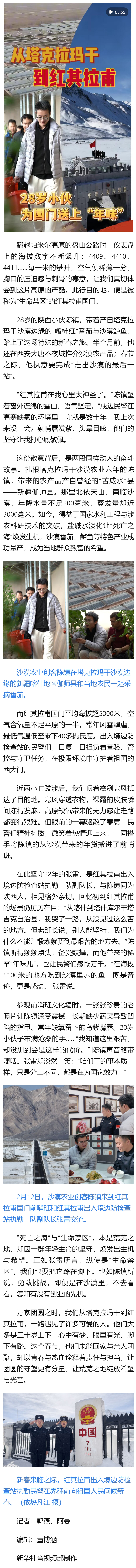 原标题: 新春走基层|从塔克拉玛干到红其拉甫,28岁小伙为国门送上“年味”