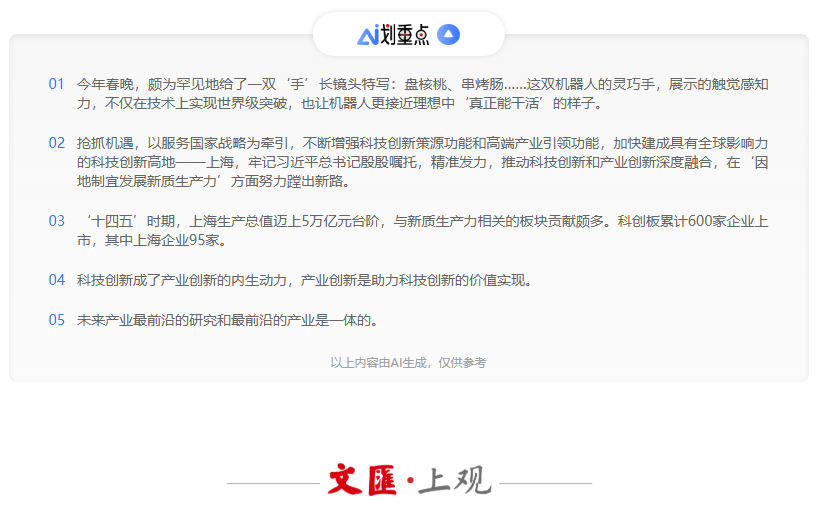从为博士生圆梦创业到构建一套支撑体系,上海正结合实践回答关键命题:AI时代,如何将活跃的个体创造力高效转化为新质生产力——这亦是科创领域践行“投资于人”的内在要义。