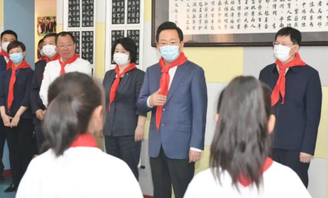 胡斌一行刚踏进市第一实验小学校门,热情的少先队员就迎上前来,为他们系上红领巾,敬少先队队礼。胡斌与学生们亲切交流互动,在校史馆听学生讲解校史,观看学生合唱团演唱、交响乐队演奏,向学生们送上节日礼物和祝福。