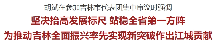 1月24日下午,市委书记胡斌在参加省十四届人大三次会议吉林市代表团集中审议时强调,深入贯彻习近平总书记在新时代推动东北全面振兴座谈会上的重要讲话精神,全面落实全省“一主六双”高质量发展战略,坚持稳中求进、以进促稳、先立后破,全力打造“一个中心、四个基地”,奋力走出高质量发展、可持续振兴新路,以昂扬姿态建设形神兼备的新时代新江城。