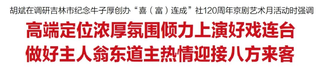 8月27日,市委书记胡斌率队调研吉林市纪念牛子厚创办“喜(富)连成”社120周年京剧艺术月活动开展情况。他强调,要深入学习贯彻习近平文化思想,高端定位、浓厚氛围,倾力上演好戏连台,做好主人翁、东道主,热情迎接八方来客,全力以赴办好本次活动,推动我市文化事业做大做强。