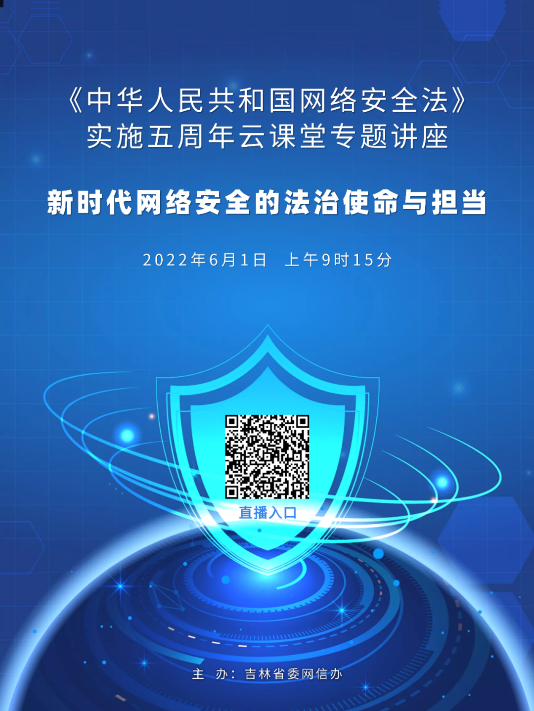 6月1日(星期三)9时15分,省委网信办将邀请专家学者以“新时代网络安全法治使命与担当”为主题举办云课堂专题讲座,围绕网络安全热点问题进行系统解读。