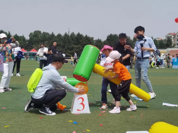 现场设置了“主舞台区”“亲子游戏区”和“亲子比拼区”,同步开展活动。在主舞台区,孩子们天真地唱起儿歌跳着舞,表演了诗朗诵、三句半、武术和评剧等节目,精彩的才艺赢得观众掌声,梦幻泡泡秀、扭气球等互动环节更是吸引孩子们积极参加;在亲子游戏区,大家开心地玩着“童乐保龄球”“愤怒的小鸟”“迷你高尔夫挑战”“欢乐海洋球”“射球一击必胜”“垃圾分类投壶挑战”“套圈”和“飞盘投篮、撞柱、击数”等趣味游戏,每成功一项获得印章一枚,集满印章领取奖品;在亲子比拼区,以家庭为单位分组,小朋友在道具内推,家长在外面辅助前行,小朋友捧着充气大锤砸家长手中的小气球,大人和孩子一起参与“趣味赶‘羊’”“同舟共济”等项目比赛,默契配合、开心玩耍,在寓教于乐中欢度美好时光。