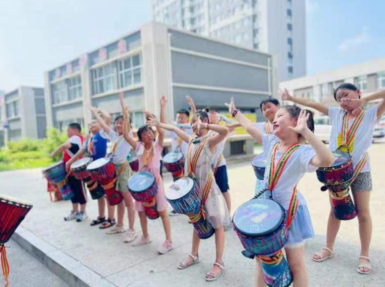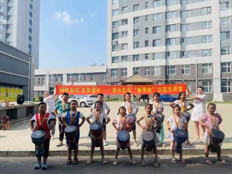 在学习非洲鼓的乐趣中,孩子们汲取力量、健康生活、幸福成长。秀水社区将继续本着“家长放心,孩子开心”的原则,让孩子们在“家门口”快乐成长,搭上“党建+”的成长快车,将社区环境大“蝶变”,为辖区儿童营造一个有爱、有趣、友好的成长环境。