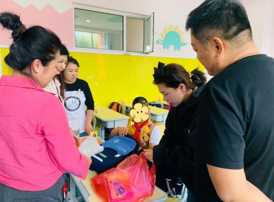 图片说明:秀水社区葵花籽公益服务队为新转校困难学生送温暖,图片由社区提供。(松花江网编辑 何晨熙)