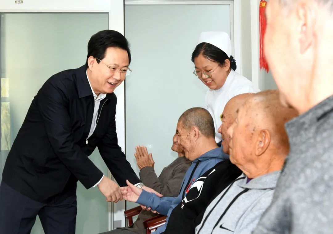 市委书记胡斌在市社会福利院看望慰问老人,并送上节日问候和美满祝愿。