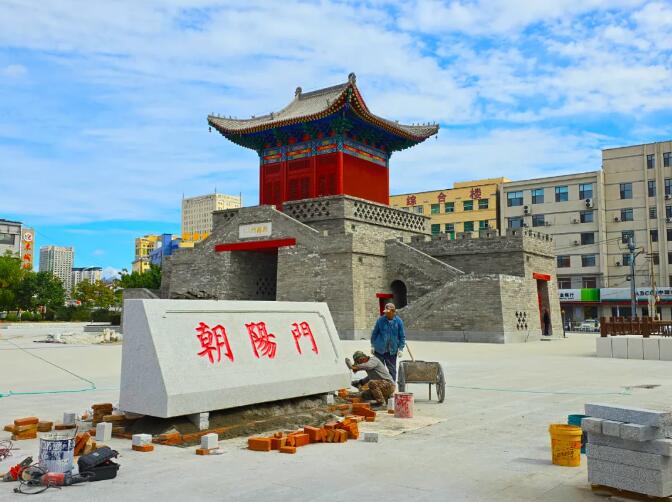 现正在进行城门楼体亮化设施安装、各城门示意图地砖、朝阳门字碑基座的施工将于10月1日对外开放
