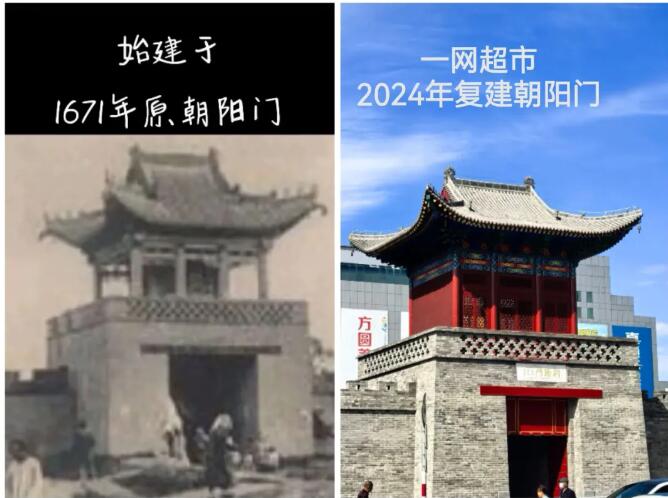 1671年原吉林市朝阳门的建筑图片与新建后的朝阳门对比