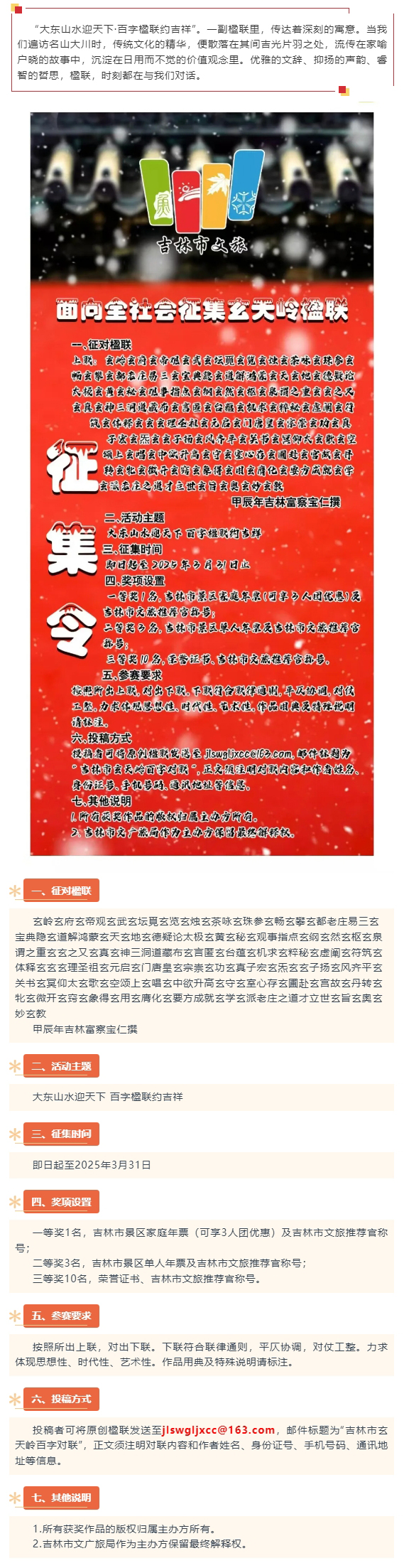 吉林市玄天岭楹联征集令来咯!楹联高手们,快来看看有多“玄”