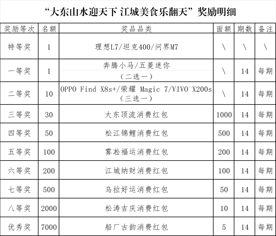 原标题: 关于开展“大东山水迎天下 江城美食乐翻天”享美食中大奖抽奖促销活动的公告