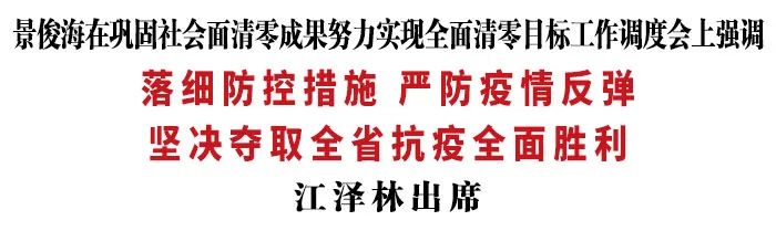 今天,省委书记景俊海以视频形式主持召开巩固社会面清零成果、努力实现全面清零目标工作调度会。他强调,要深入贯彻习近平总书记关于统筹疫情防控和经济社会发展的重要讲话重要指示精神,按照孙春兰副总理部署要求,坚持科学精准、动态清零不犹豫不动摇,落细防控措施,严防疫情反弹,坚决夺取全省抗疫全面胜利。省政协主席江泽林出席会议。