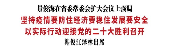 今天,省委书记景俊海以视频形式主持召开省委常委会扩大会议,传达学习中共中央政治局4月29日会议主要精神,研究部署我省贯彻落实举措。景俊海强调,全省上下要切实把思想和行动统一到以习近平同志为核心的党中央对经济形势的判断和决策部署上来,坚定信心、攻坚克难,坚持疫情要防住、经济要稳住、发展要安全,以实际行动迎接党的二十大胜利召开。省委副书记、省长韩俊,省政协主席江泽林出席会议。