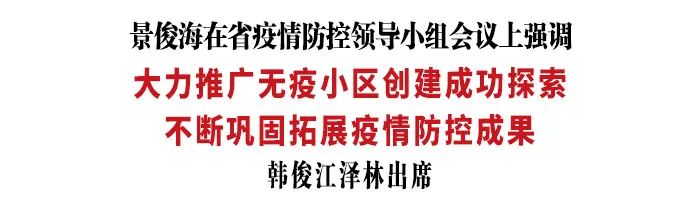 景俊海强调,各级党委政府要把创建无疫单位和无疫县(市、区)作为要事、实事、好事来抓,确保上下贯通、一抓到底、抓出成效。要把无疫单位、无疫县(市、区)创建工作纳入重要议事日程,成立工作专班,制定实施方案,明确各单位任务和责任,一级抓一级,层层抓落实,着力打通工作难点堵点,确保各项任务精准到点、落实到人、执行到位。要进一步探索突破,及时总结推广成功做法,广泛征求群众意见建议,推动疫情防控和社会治理创新取得新成效。要建立健全长效机制,坚持以“五化”闭环工作法推动工作落实,筑牢疫情防控的坚实堡垒。要把无疫单位和无疫县(市、区)创建工作做成强信心、暖人心、顺民心的好事,鼓励群众积极投身无疫创建,凝心聚力、攻坚克难,坚定不移夺取抗疫全面胜利。