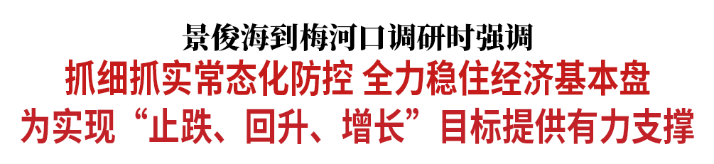调研中,景俊海强调,统筹抓好常态化疫情防控和经济社会发展,是坚持“疫情要防住、经济要稳住、发展要安全”,实现“止跌、回升、增长”目标的必然要求。梅河口市党委、政府要深刻、完整、全面把握党中央确定的疫情防控方针政策,始终坚持人民至上、生命至上,坚持科学精准、动态清零,扎实推进常态化防控和应急处置各项工作,坚决巩固住来之不易的疫情防控成果。要千方百计稳经济增长,着力保持产业链供应链稳定,加快推进重大项目建设,扎实开展系列消费活动,全力以赴保市场主体、保就业、保民生,确保经济运行在合理区间。各级领导干部要以“时时放心不下”的责任感,切实抓好各项工作,坚决守住不发生系统性风险底线,以实际行动迎接党的二十大胜利召开。