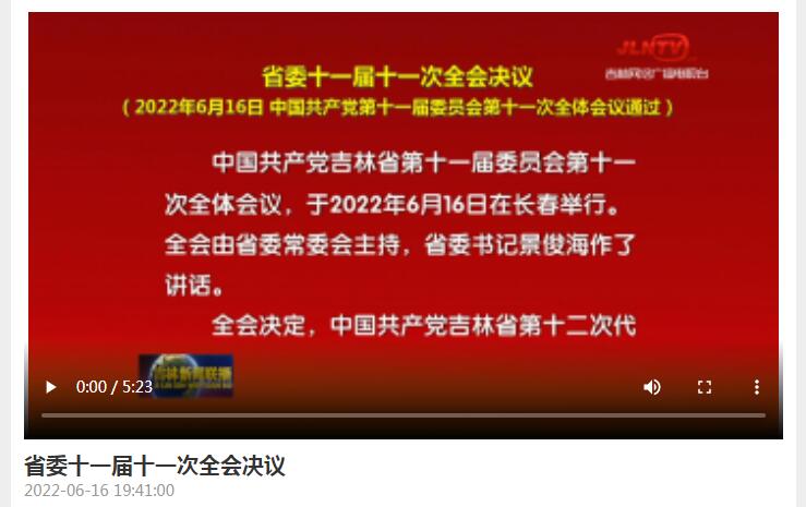 中国共产党吉林省第十一届委员会第十一次全体会议,于2022年6月16日在长春举行。全会由省委常委会主持,省委书记景俊海作了讲话。