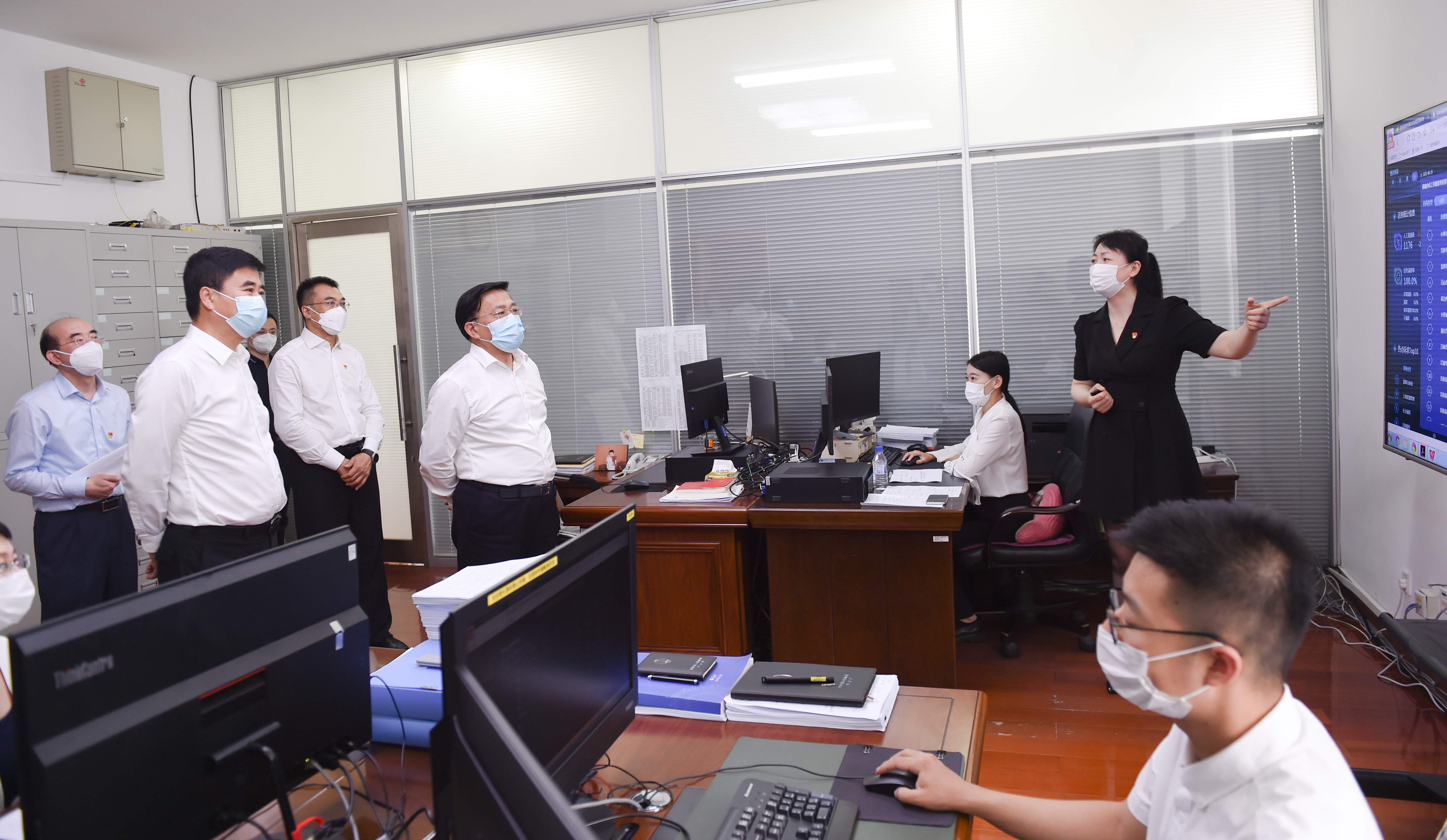 在“七一”前夕,韩俊到省政府办公厅省长公开电话受理室调研。