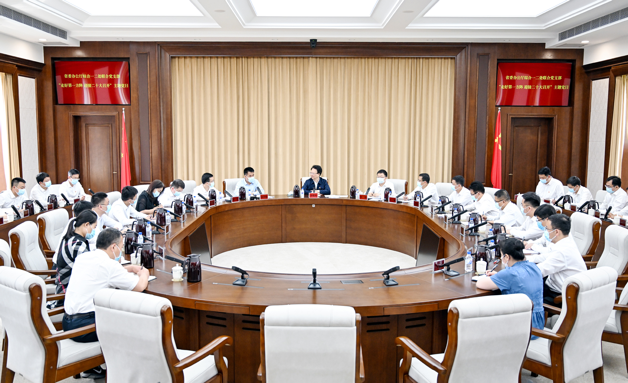 6月30日,省委书记景俊海以普通党员身份参加省委办公厅综合一、二处联合党支部“走好第一方阵 迎接二十大召开”主题党日活动。