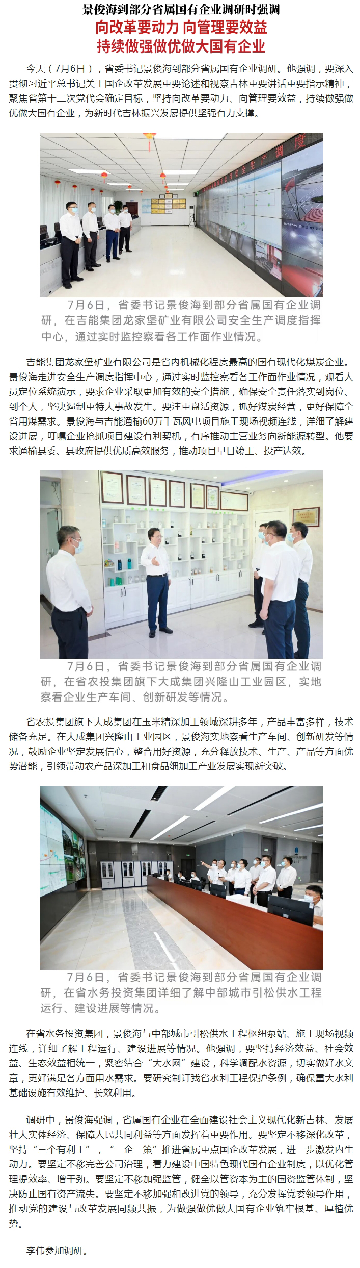 景俊海:向改革要动力 向管理要效益 持续做强做优做大国有企业